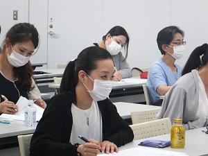 受講者はソーシャルディスタンスを保ち、講師は透明マスク着用で、新型コロナウイルス対策を行っての講座となりました。