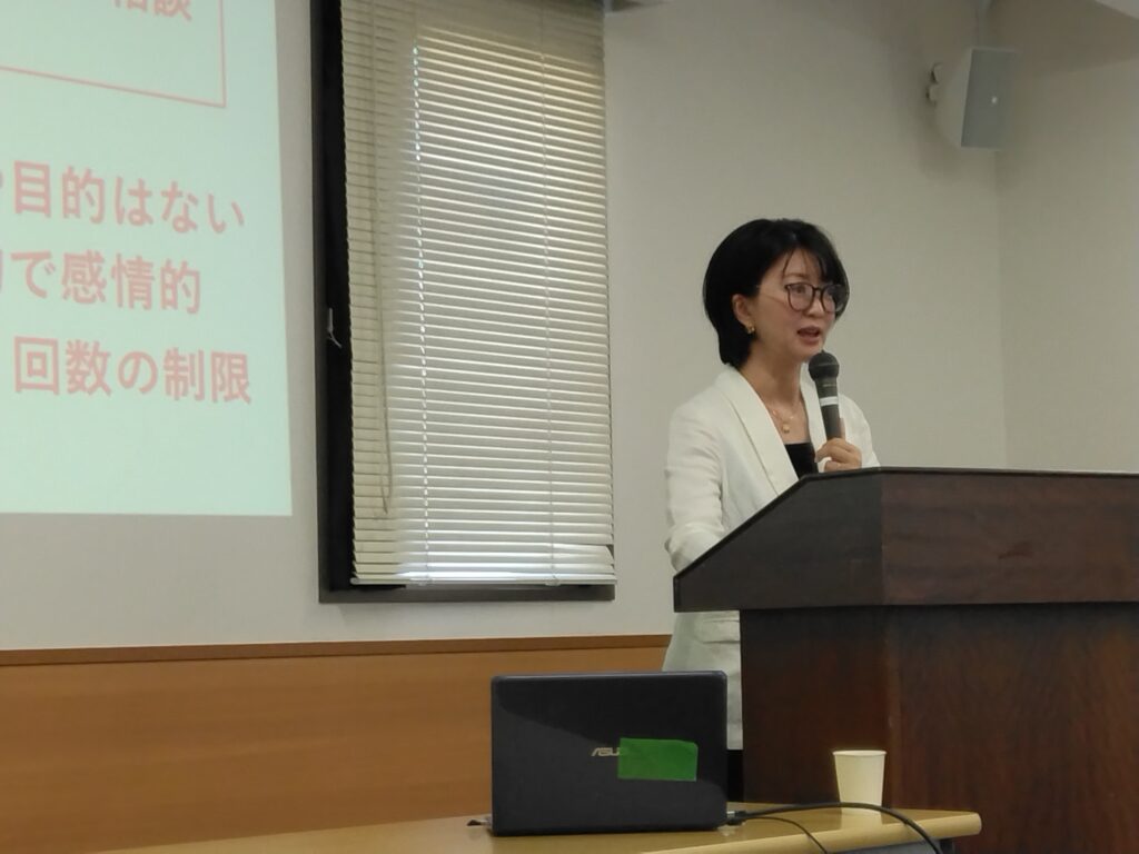 9/7(土)卒業生のための研究会が行われ、当学院相談室長の阿久津まどか先生が「周りの人からの相談に答える方法」についてお話ししました。